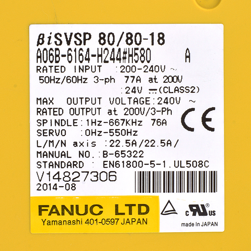Fanuc at a06b - 6164 - H244 # H580 ਫੈਨੁਕ 8/80 - 18